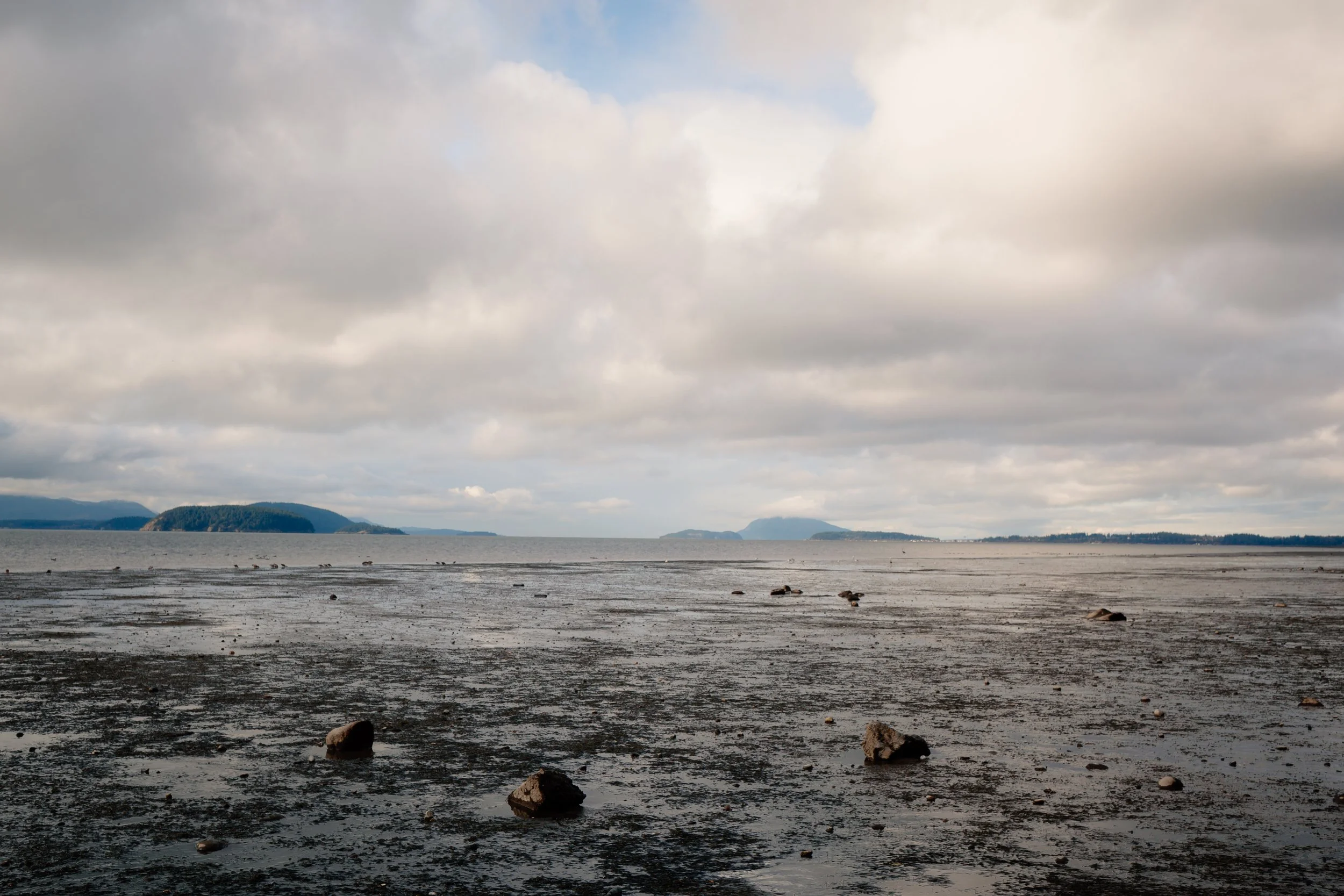 The mudflats of Padilla Bay on Feb. 16, 2026. On low tide, the waters give way to beds of long, thin eelgrass. // Photo by Harley Brown