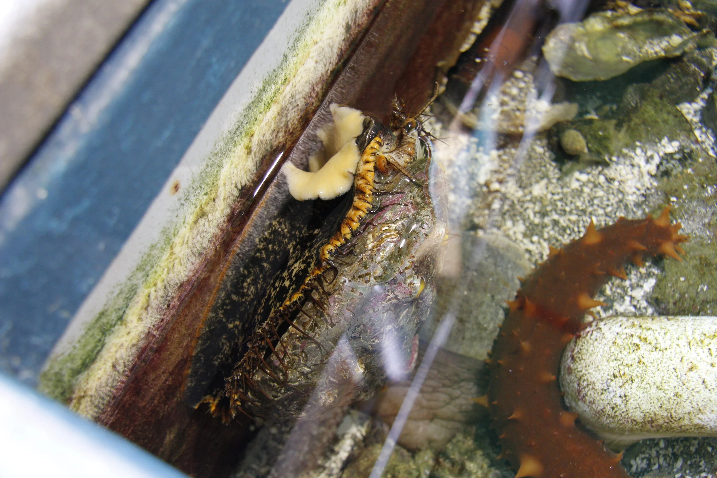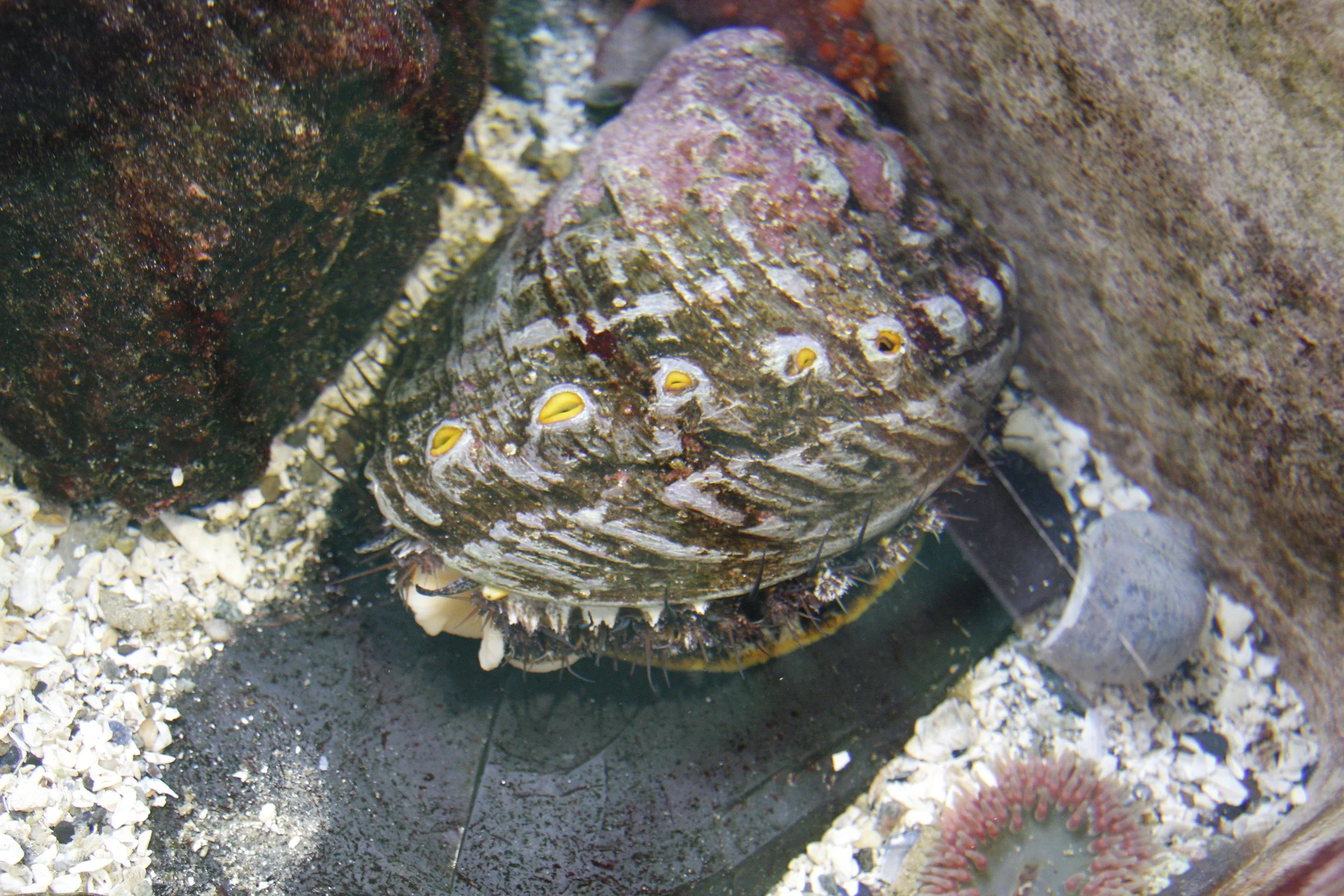 An adult abalone at the Marine Life Center, showing the spotted foot which gives them the name “pinto”. " // Photo by Brooklyn “Bug” Santee