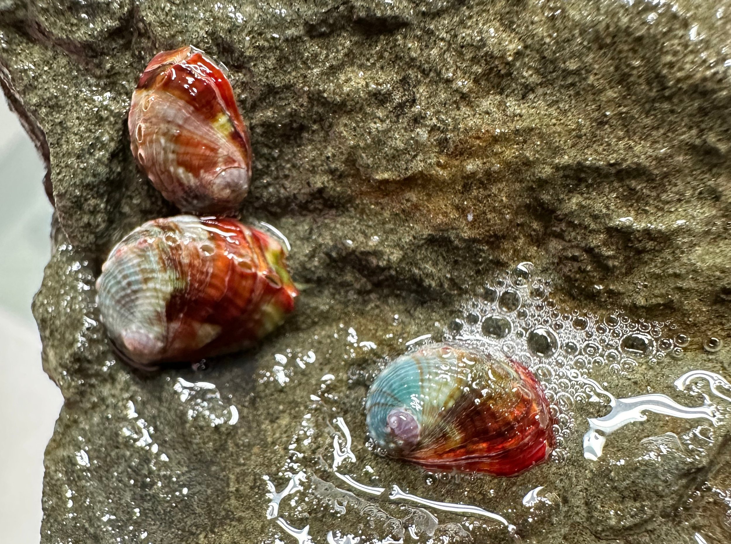 A few young pintos on a rock. The color of their shells is dictated by the type of algae they eat. // Photo by Brooklyn “Bug” Santee