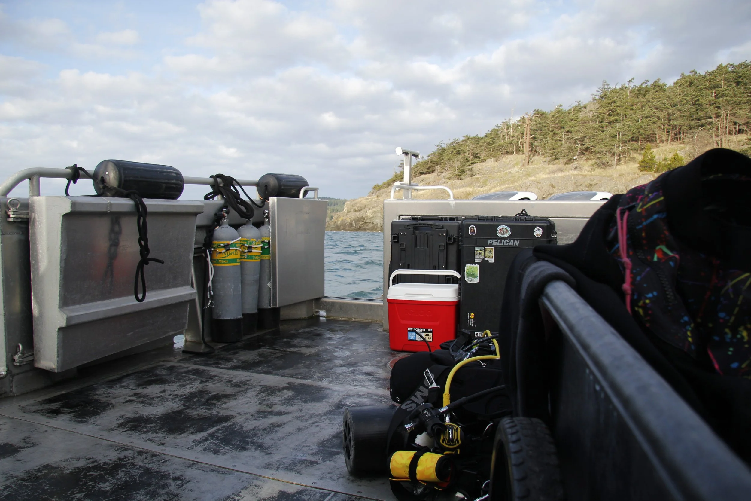 A view of James Island from the deck of “Caliper,” WDFW’s boat used for dives to release and survey for abalone. // Photo by Brooklyn “Bug” Santee