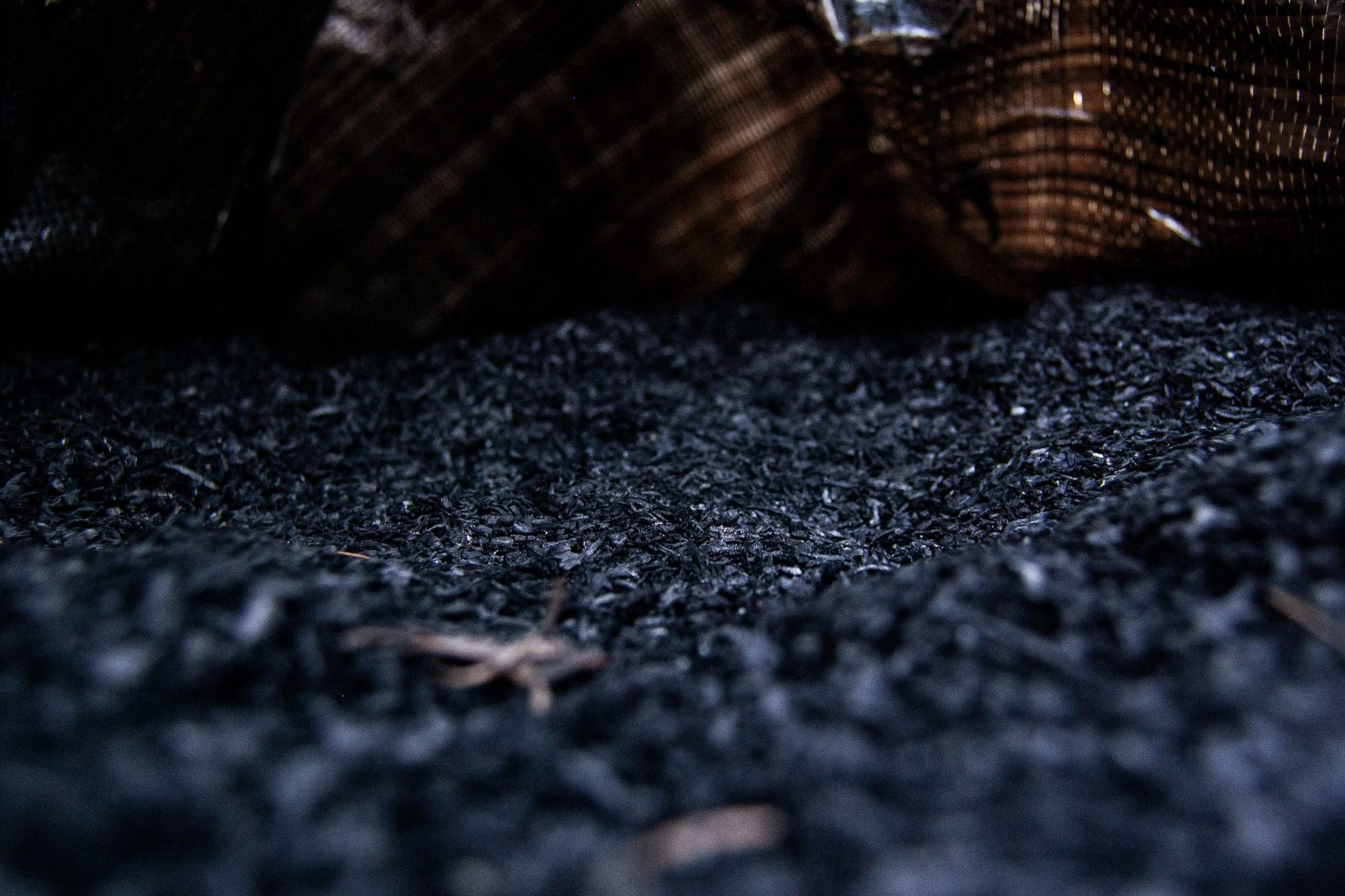 Biochar in a large sack at East of Eden Farm in Whatcom County, Wash., on March 5, 2026. Its ability to sequester carbon has made biochar a useful tool towards fighting the climate crisis. // Photo by Liam Britt