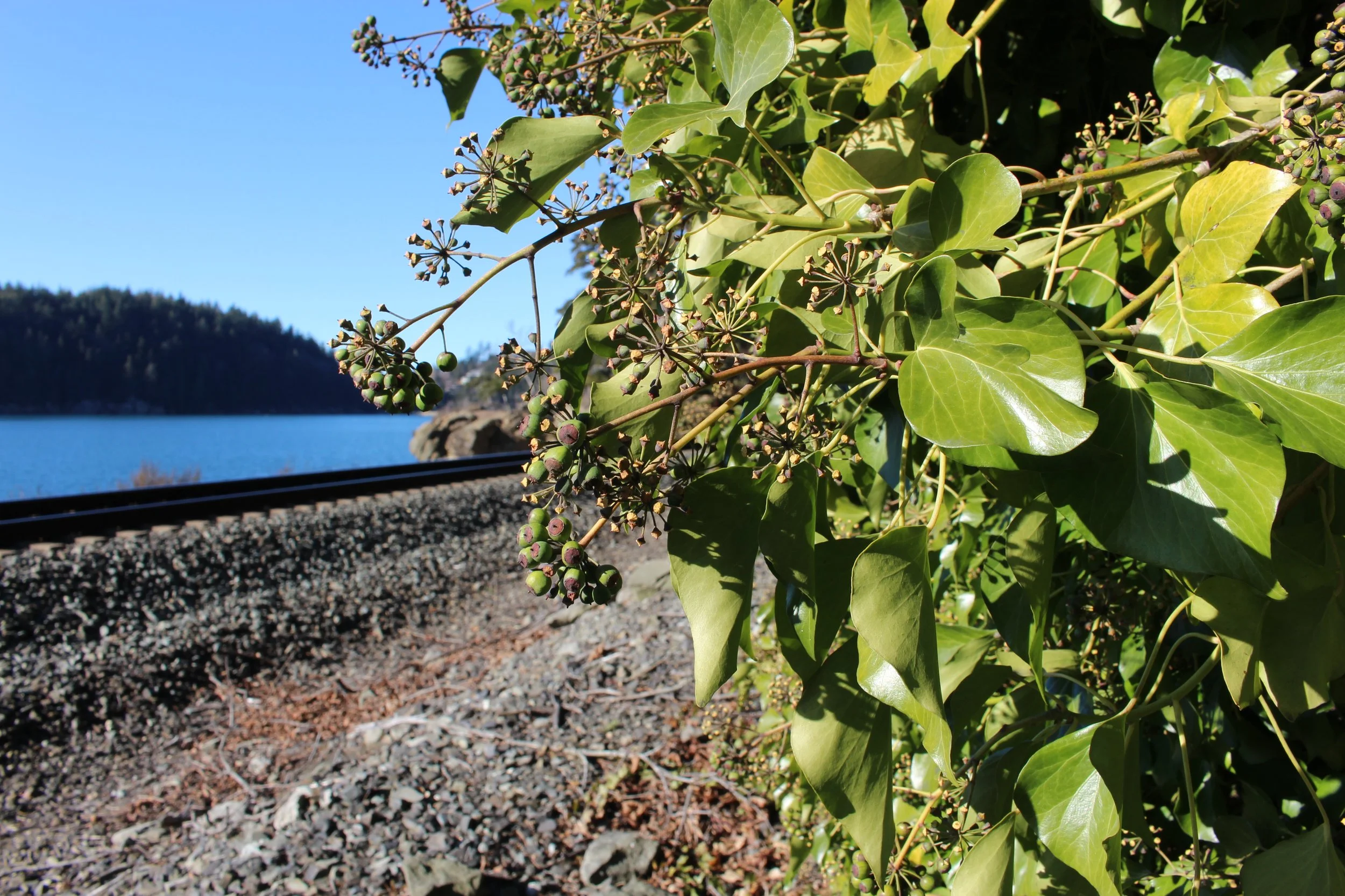 Mature English ivy leaves, flowers, and unripened berries near Teddy Bear Cove. // Photo by Fallon Jenkins
